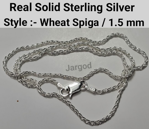 Real Solid 925 Sterling Silver Wheat Spiga Chain Necklace 1.5mm Italy Jargod