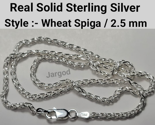 Real Solid 925 Sterling Silver Wheat Spiga Chain Necklace 2.5mm Italy Jargod