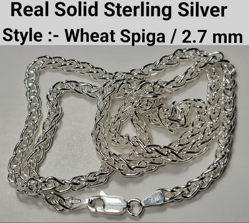 Real Solid 925 Sterling Silver Wheat Spiga Chain Necklace 2.7mm Italy Jargod