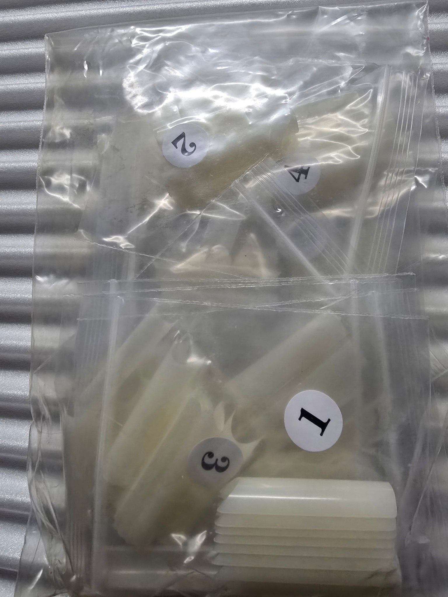 Each size is separately packaged in pre-numbered bag