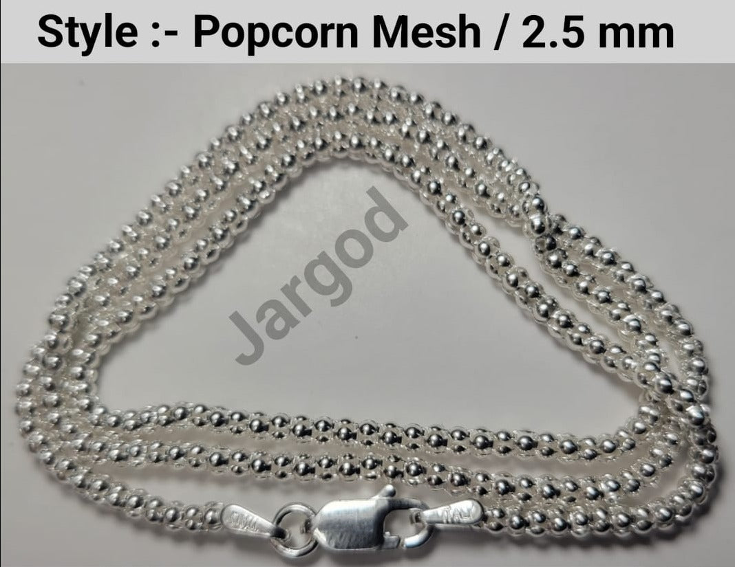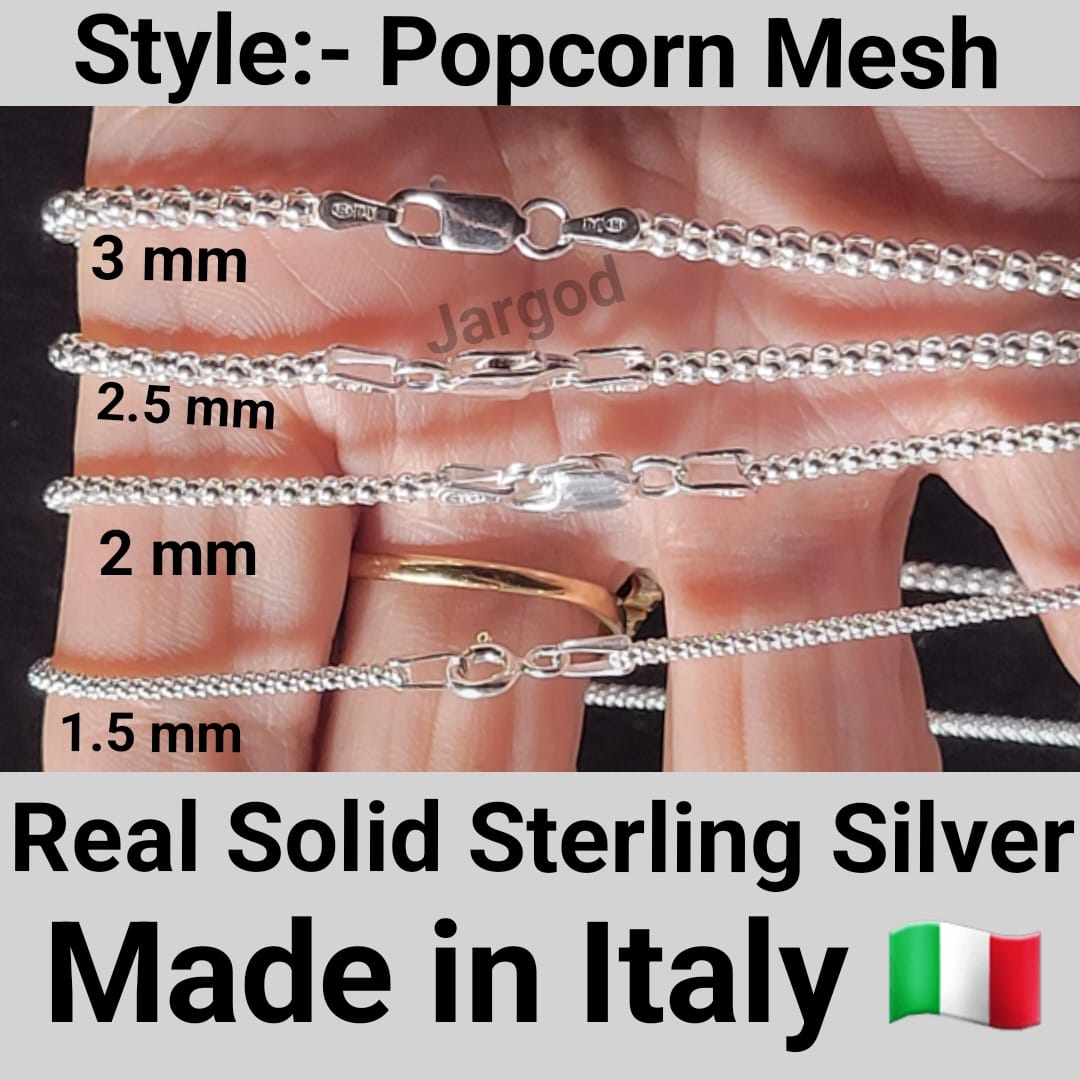 - Italian Made 925 Sterling Silver Popcorn Mesh Chain Necklace Unisex