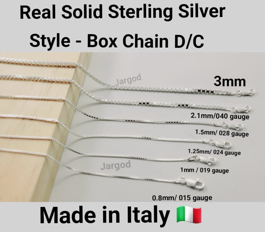 - Italian Made Solid Sterling Silver Box Diamond Cut Chain Necklace